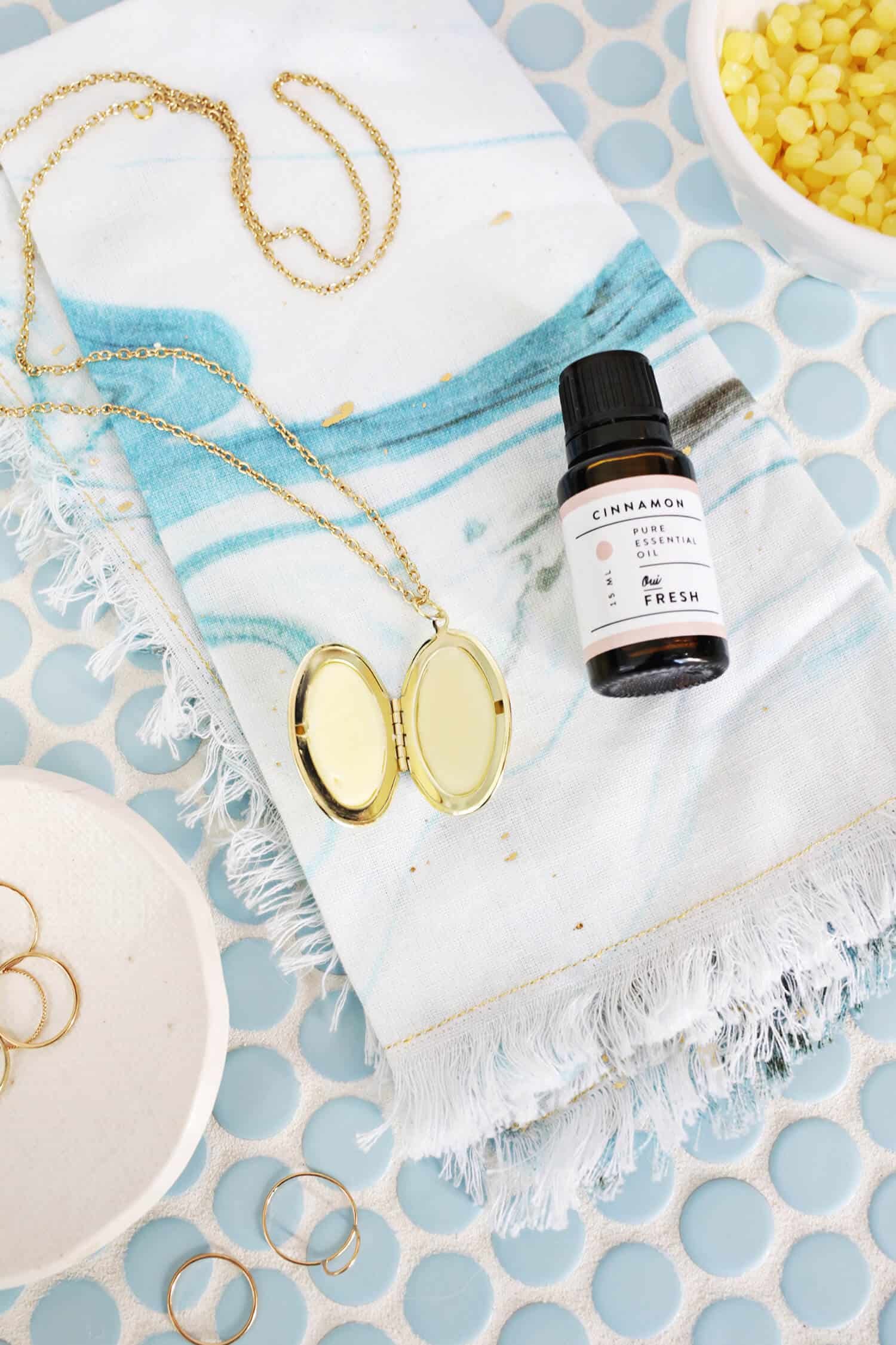 With only three ingredients you can make a moisturizing lip balm to pour into a locket with cinnamon leaf essential oil that boosts the circulation in your lips and give them a bit of a natural plump (no injections needed!).